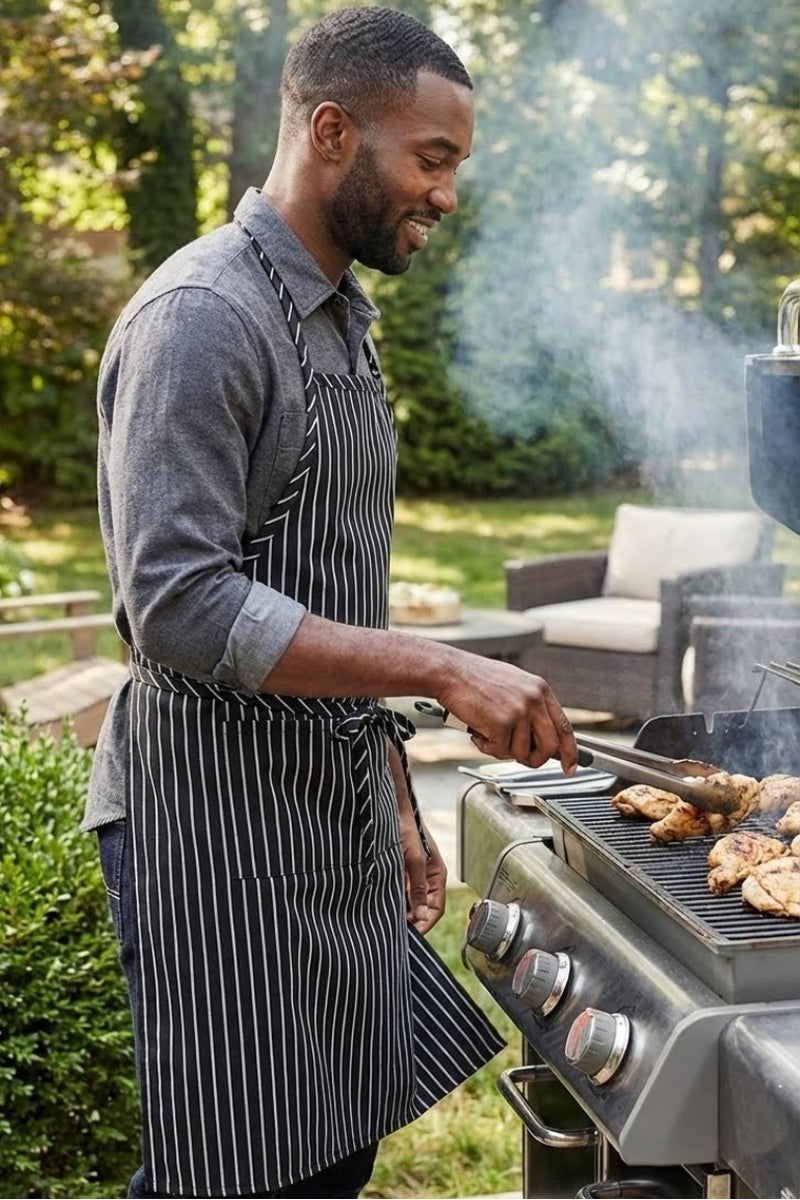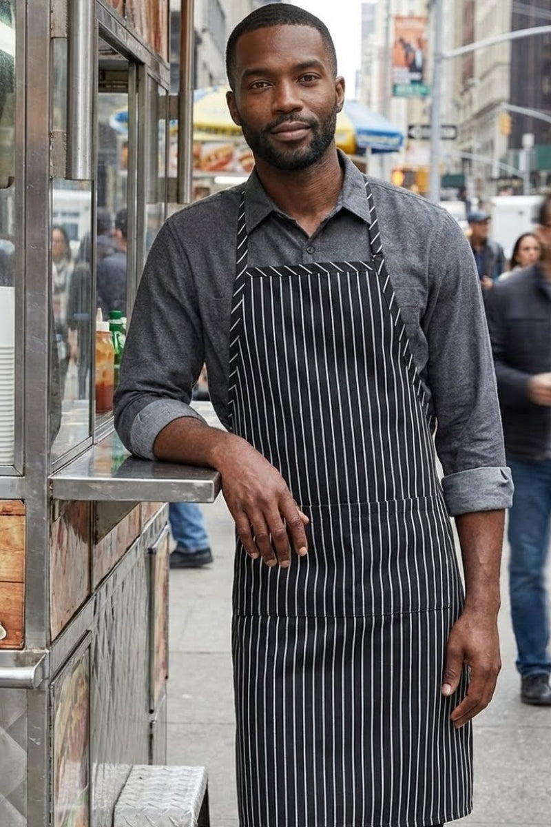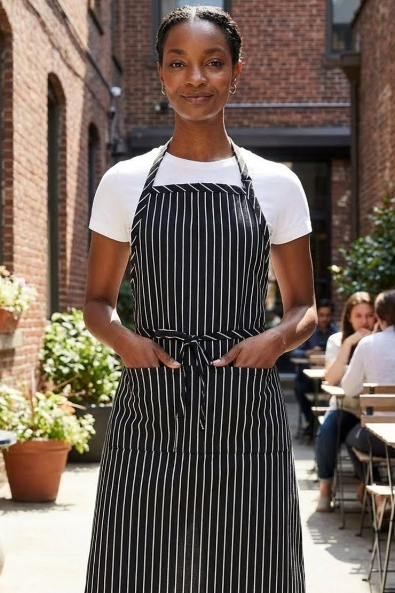 This Butcher Apron (2 Pockets) features an ultra-durable 7.5 oz. performance twill fabric. The perfect balance between 65% polyester and 35% cotton ensures this apron is durable enough to handle a long work day, while maintaining a desired level of softness and comfort. The precision cut patterns and two-piece slider neck adjustment allow adjustments to be made for ultimate comfort and ease throughout the working day.