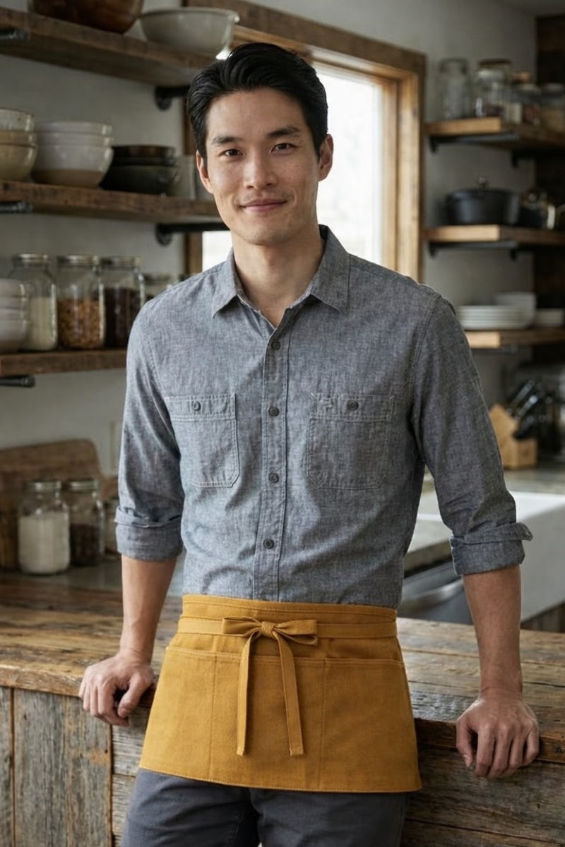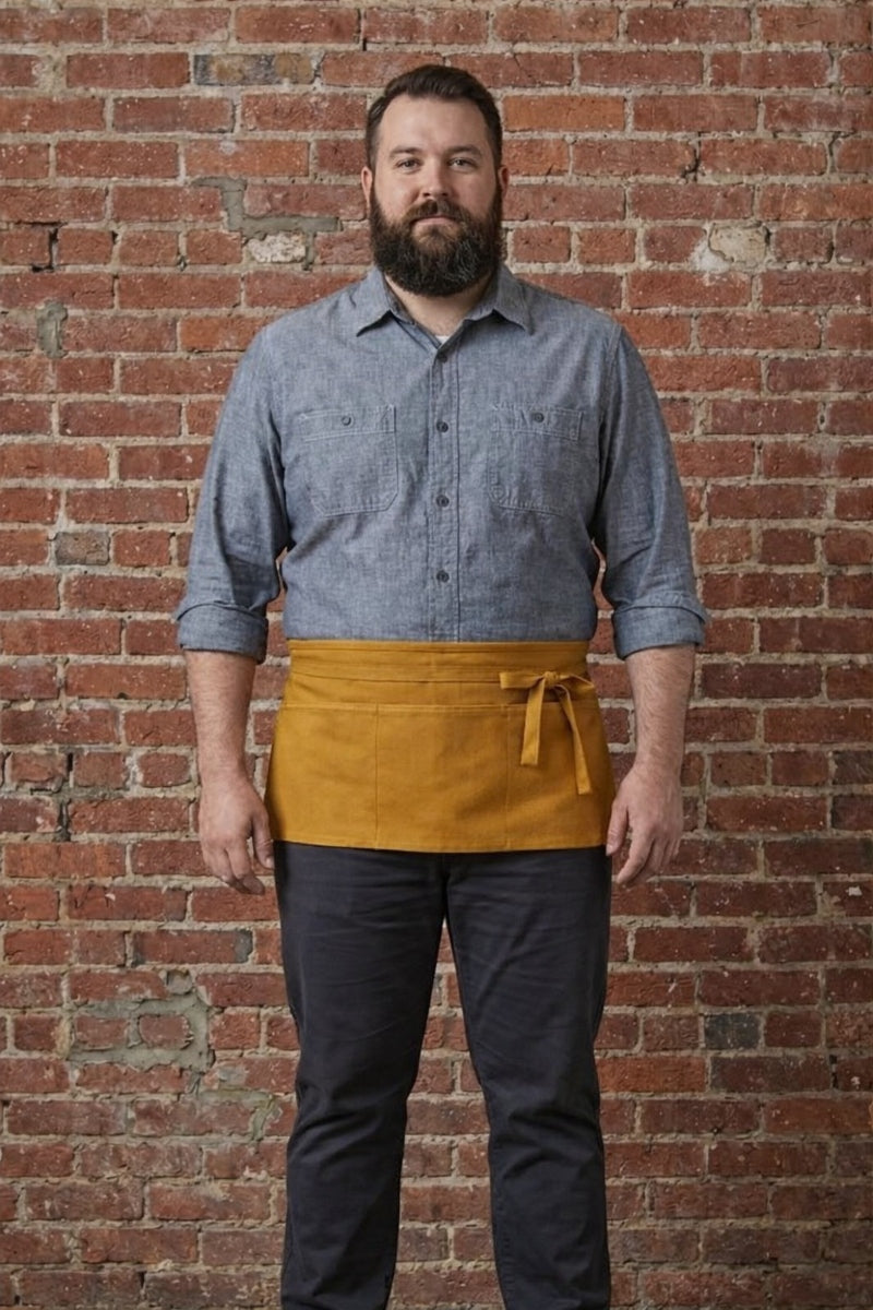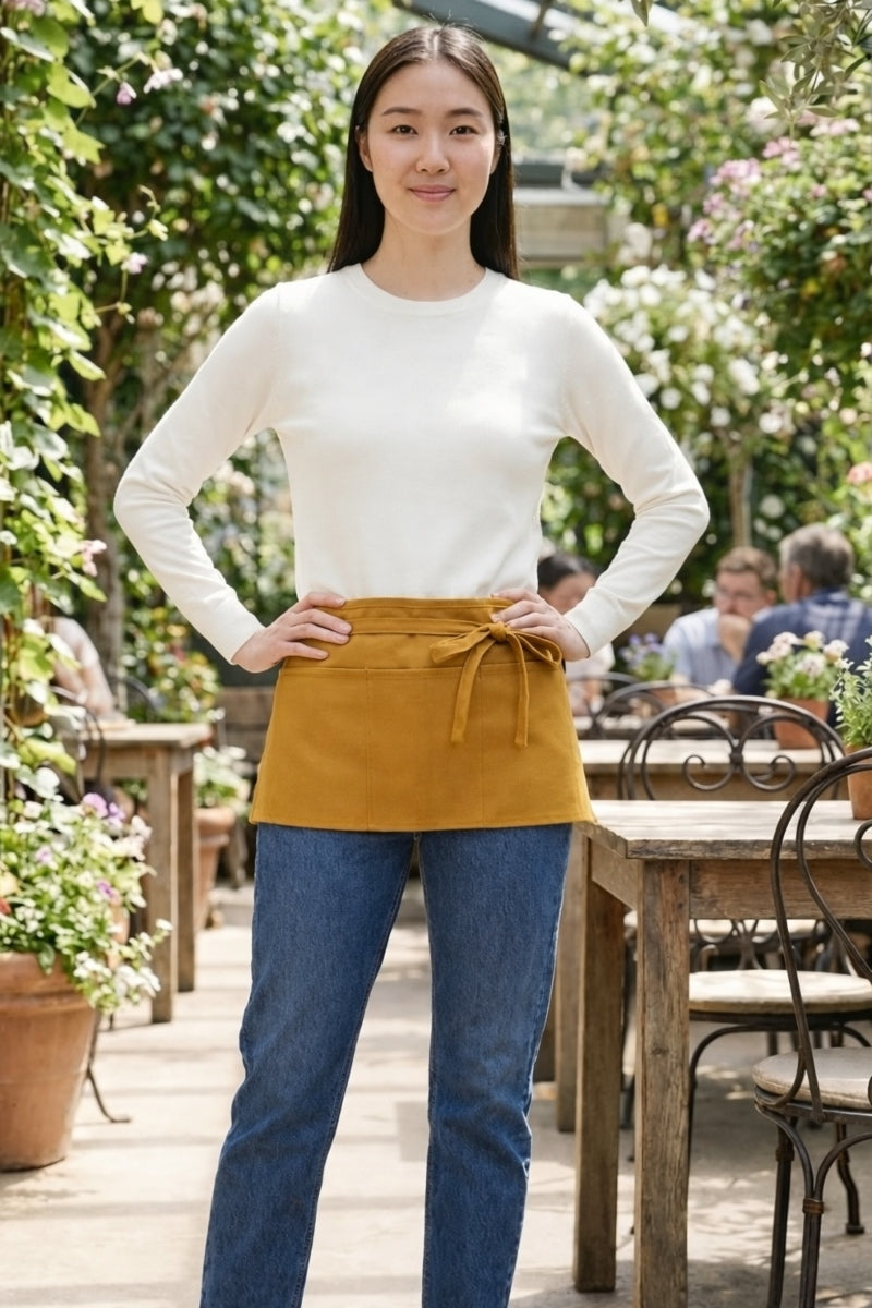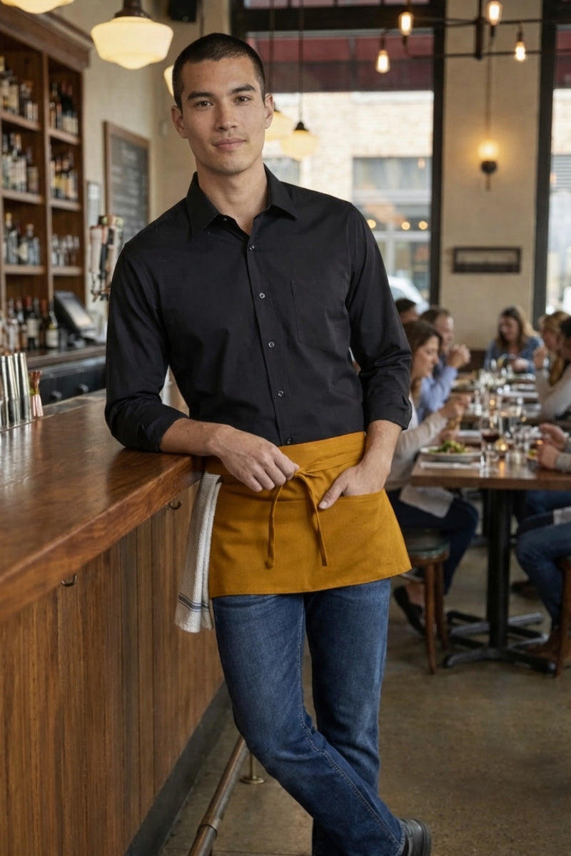 This classic style three pocket waist apron is our most popular style of restaurant apron. This waist apron is great for servers, bartenders, artists, florist and so much more! The three pockets help keep everything you need readily available and easy to find.