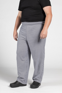 Chef pants, also known as chef trousers or chef bottoms, are a crucial component of a chef's uniform. These distinctive pants are designed with both functionality and comfort in mind to meet the demanding needs of a kitchen environment. Chef pants are typically loose-fitting to allow for ease of movement and ventilation, ensuring that chefs stay cool while working near hot stoves and ovens. The most common color for chef pants is black or checkered, which hides stains and splatters that are inevitable in a busy kitchen. Additionally, many chef pants are made from breathable and durable materials that are easy to clean, helping to maintain hygiene standards in the kitchen. These pants are not only practical but also reflect the professionalism and tradition associated with the culinary arts, making them an essential part of a chef's uniform.