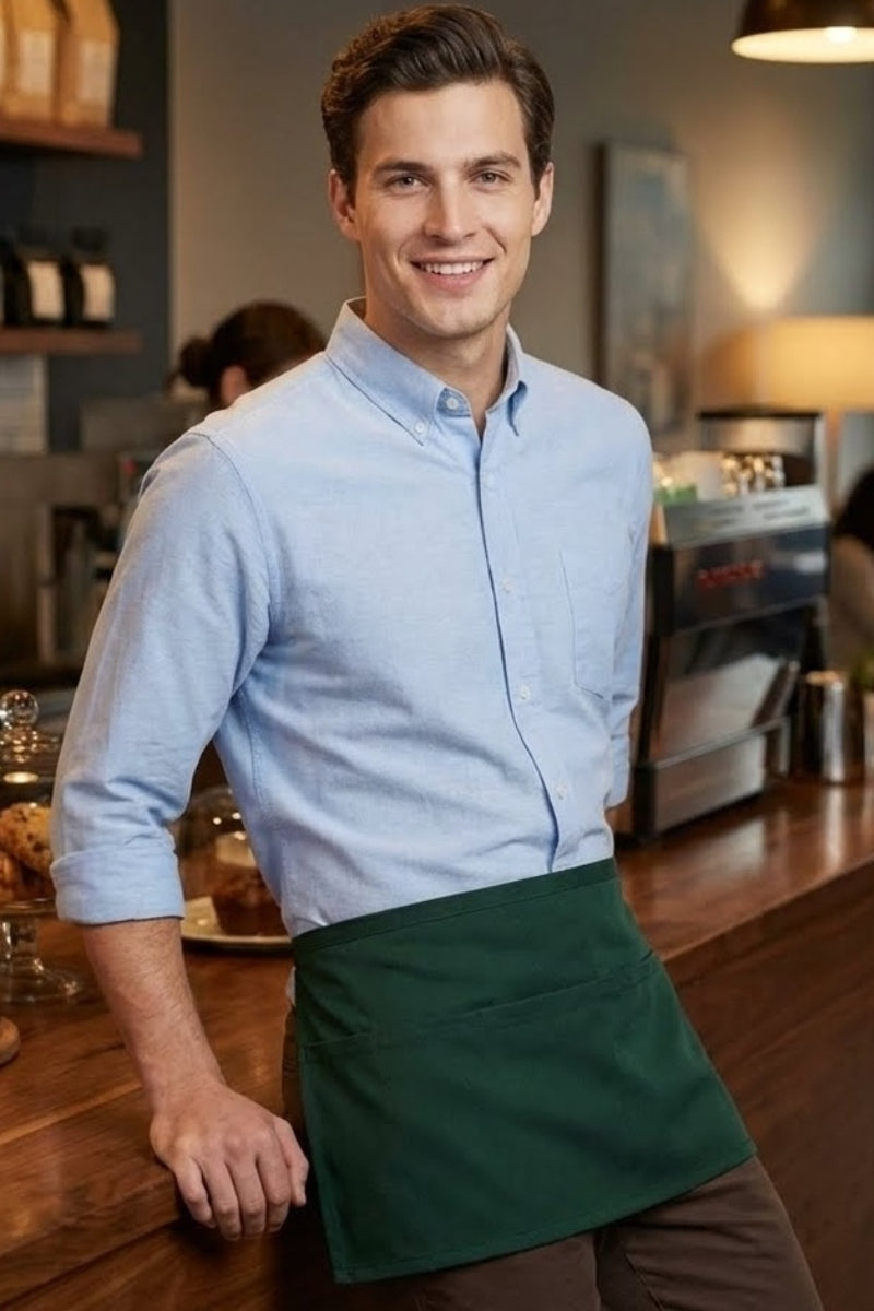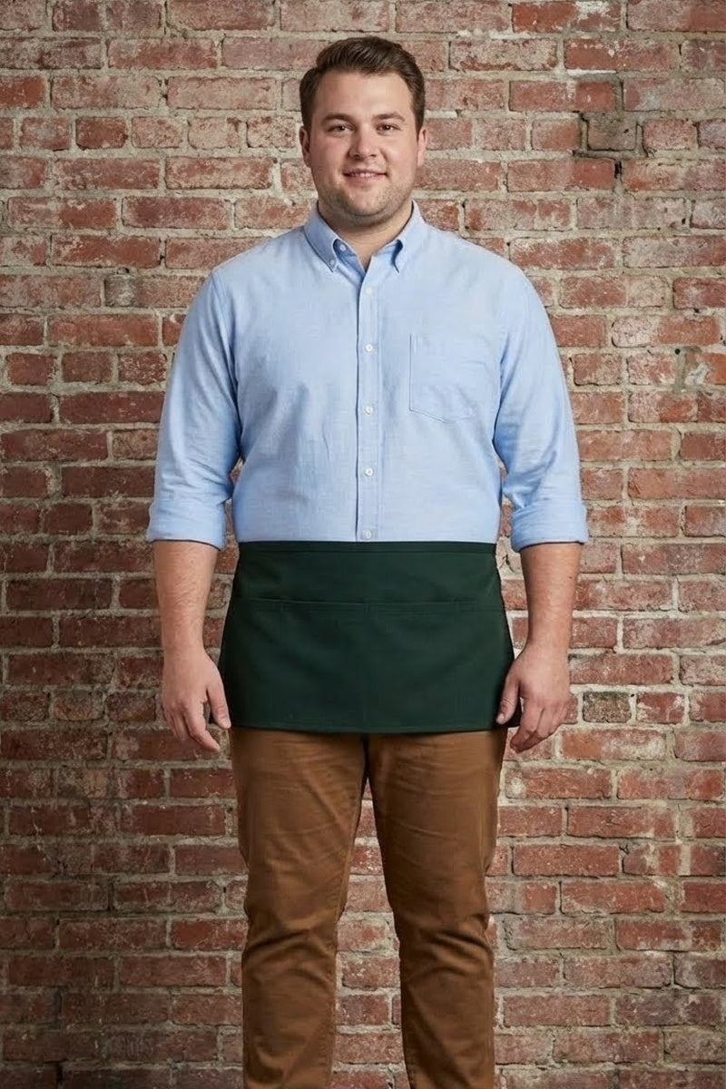 This classic style three pocket waist apron is our most popular style of restaurant apron. This waist apron is great for servers, bartenders, artists, florist and so much more! The three pockets help keep everything you need readily available and easy to find.