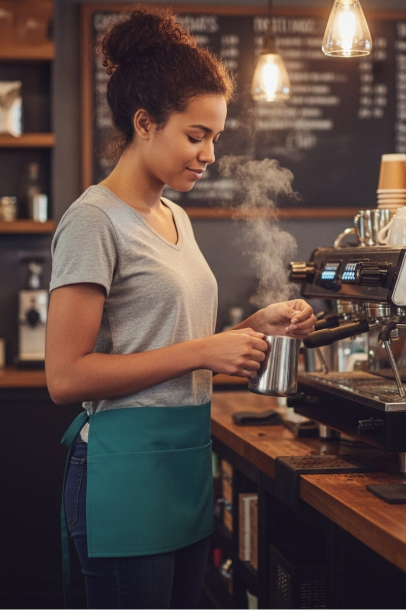 This classic style three pocket waist apron is our most popular style of restaurant apron. This waist apron is great for servers, bartenders, artists, florist and so much more! The three pockets help keep everything you need readily available and easy to find.