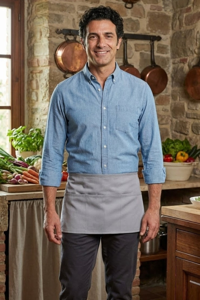 This classic style three pocket waist apron is our most popular style of restaurant apron. This waist apron is great for servers, bartenders, artists, florist and so much more! The three pockets help keep everything you need readily available and easy to find.