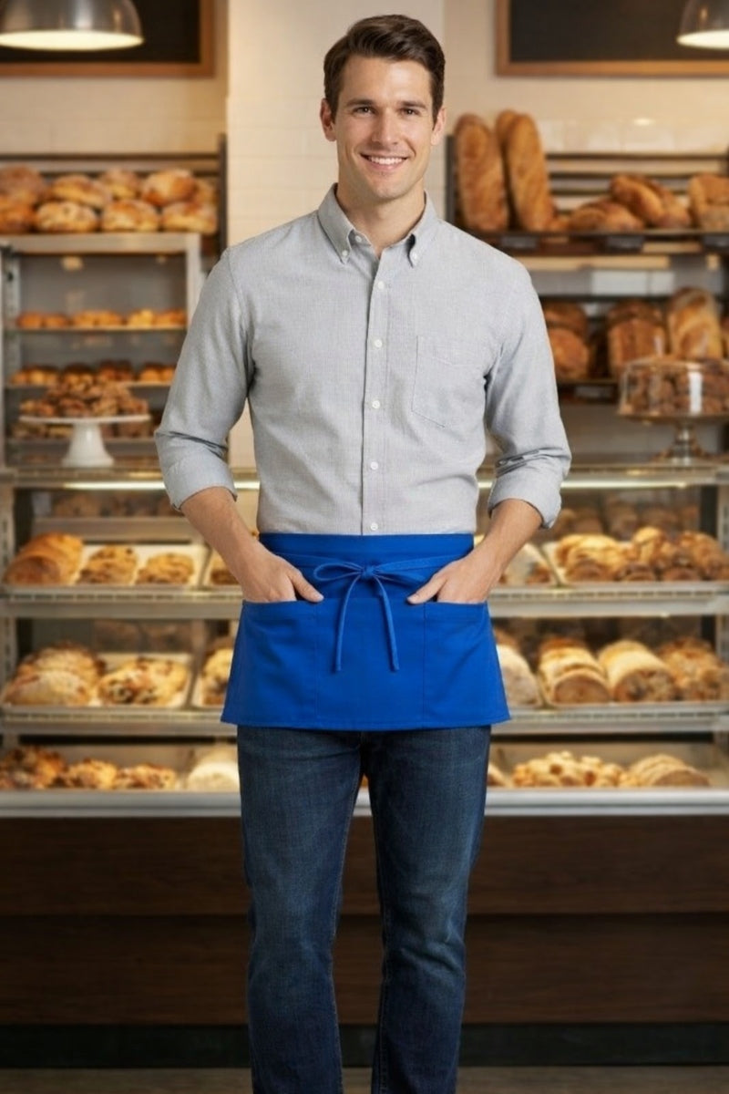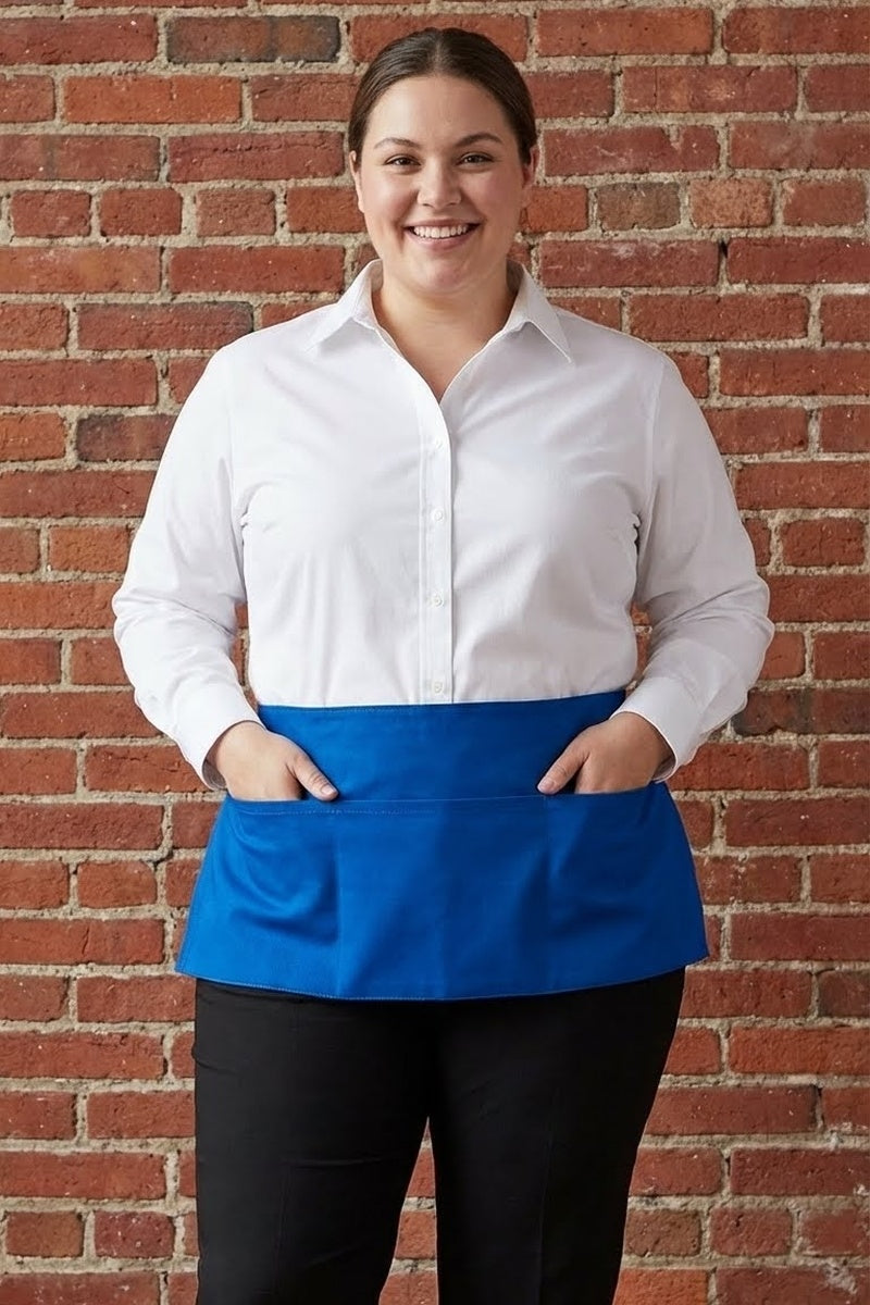 This classic style three pocket waist apron is our most popular style of restaurant apron. This waist apron is great for servers, bartenders, artists, florist and so much more! The three pockets help keep everything you need readily available and easy to find.