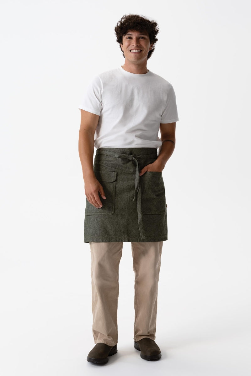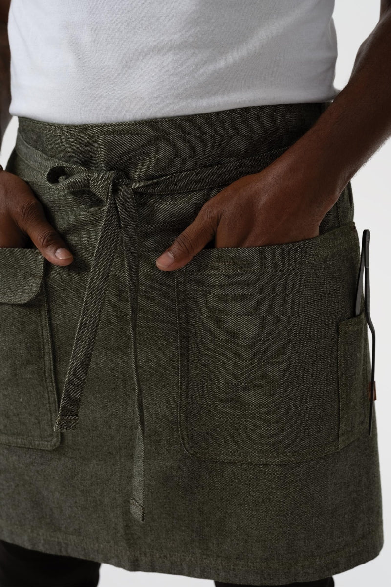 Part of the 25Seven collection, the Utility Half Bistro Apron combines durability with clean, versatile style. Built with reinforced stitching and thoughtful pocket design, it keeps your tools close and your hands free through every shift. From prep to service, this apron delivers the strength and simplicity you can count on, day in and day out.